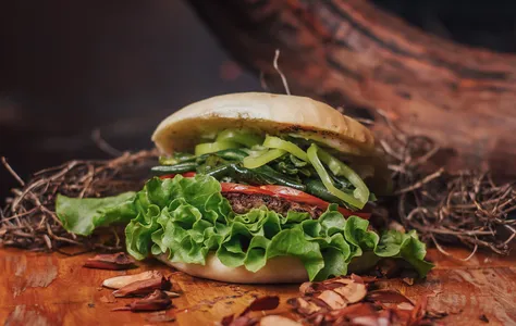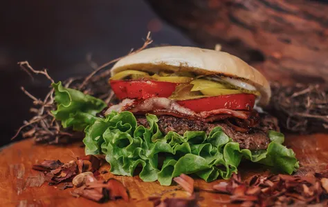 Tocino, Tomate Asado, Lechuga, Pepinillos Dill y Salsa Ali Oli.