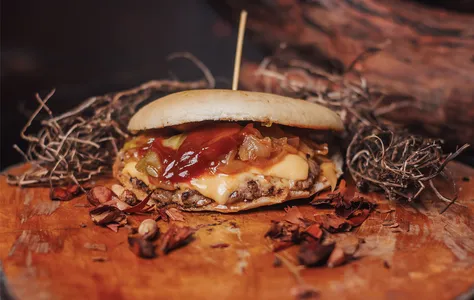 Salsa BBQ, Queso Cheddar, Cebolla Caramelizada y Pepinillos Dill.