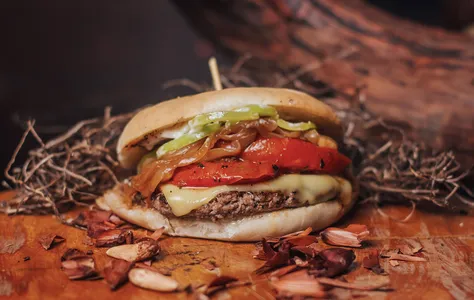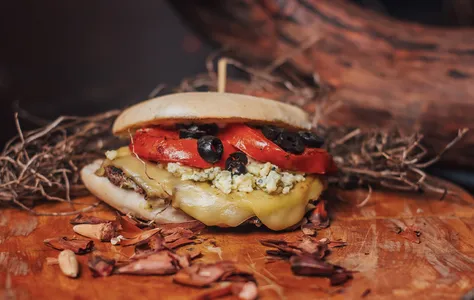 Queso Chanco, Tomate Asado, Cebolla Caramelizada, Ají Verde y Salsa Ali Oli.