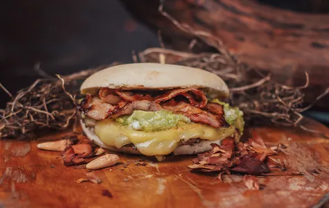Queso Cheddar, Tocino, Huevo frito y Salsa Ali Oli.