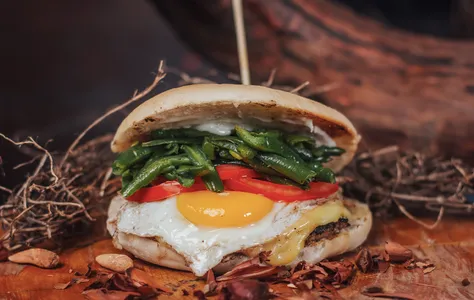 Queso Chanco, Tomate, Huevo Frito, Porotos Verdes y Salsa Ali Oli.